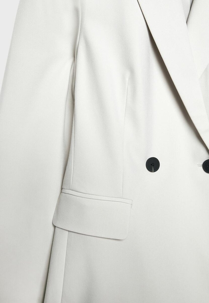 Blazer sartoriale con collo a revers e maniche lunghe. Tasche finte a filetto sul davanti e sul petto. Chiusura frontale con bottoni.