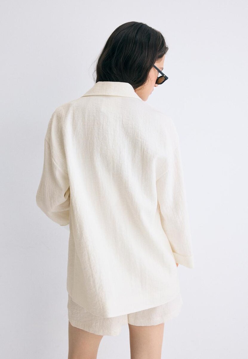 Blazer fluido con collo a V con revers e maniche lunghe. Dotato di tasche a filetto sul davanti e chiusura a doppio petto con bottoni. Disponibile in diversi colori.
