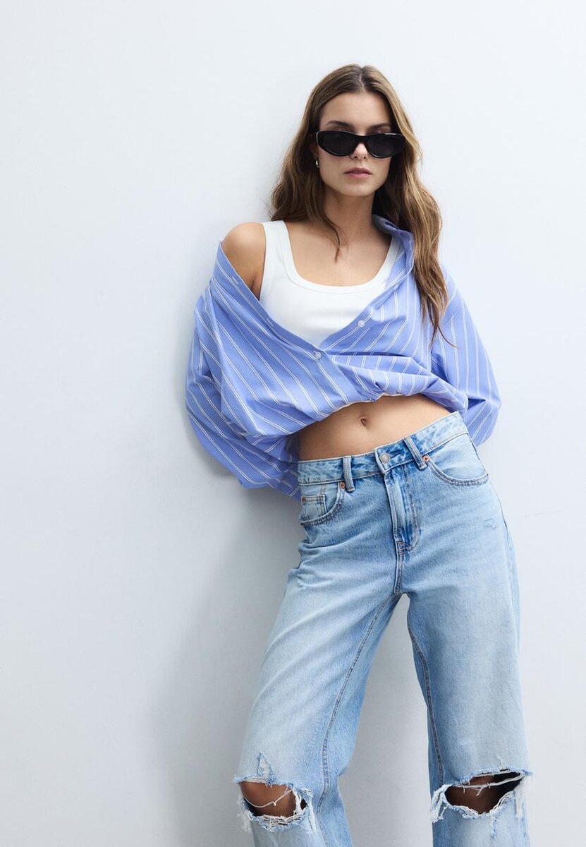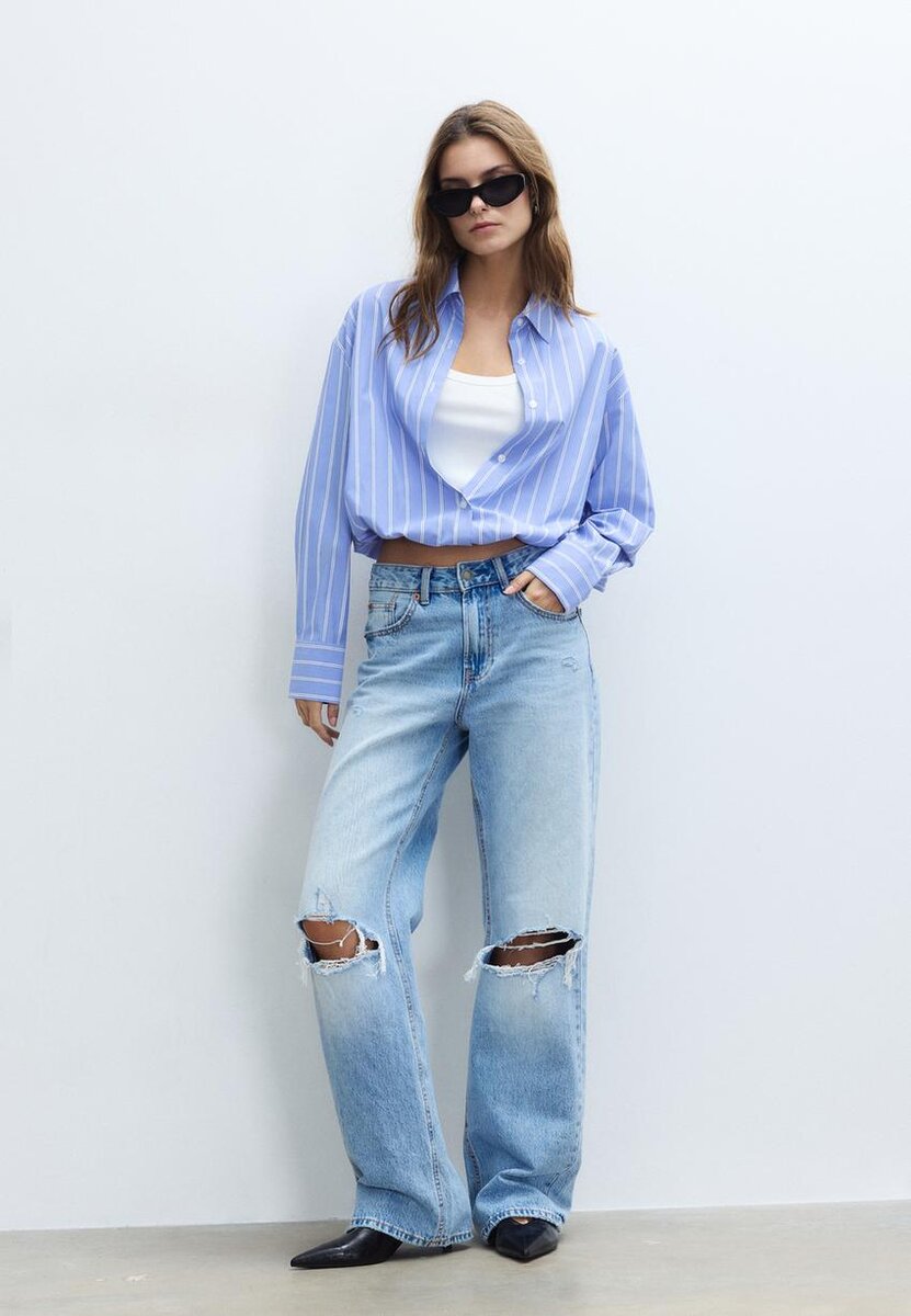 Camicia a palloncino in due materiali