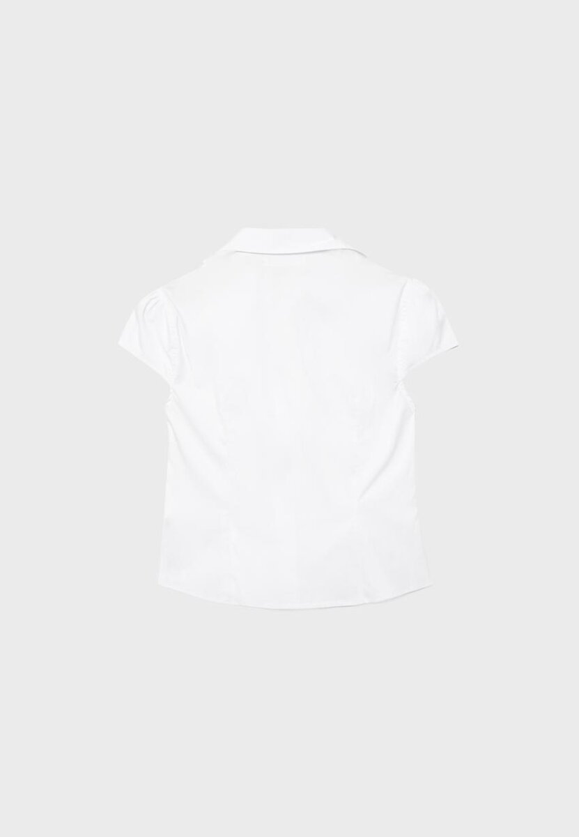 Camicia aderente con collo a revers e scollo a V, caratterizzata da maniche corte e chiusura frontale con bottoni. Disponibile in vari colori.