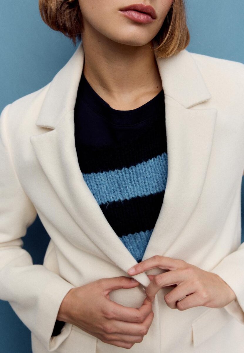 Cappotto lungo da uomo. Collo con revers e maniche lunghe. Tasche a filetto sul davanti. Chiusura frontale con bottoni.