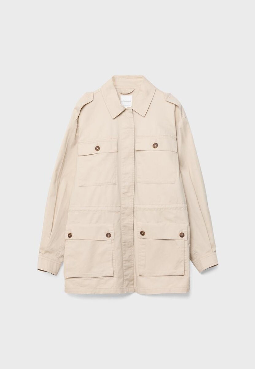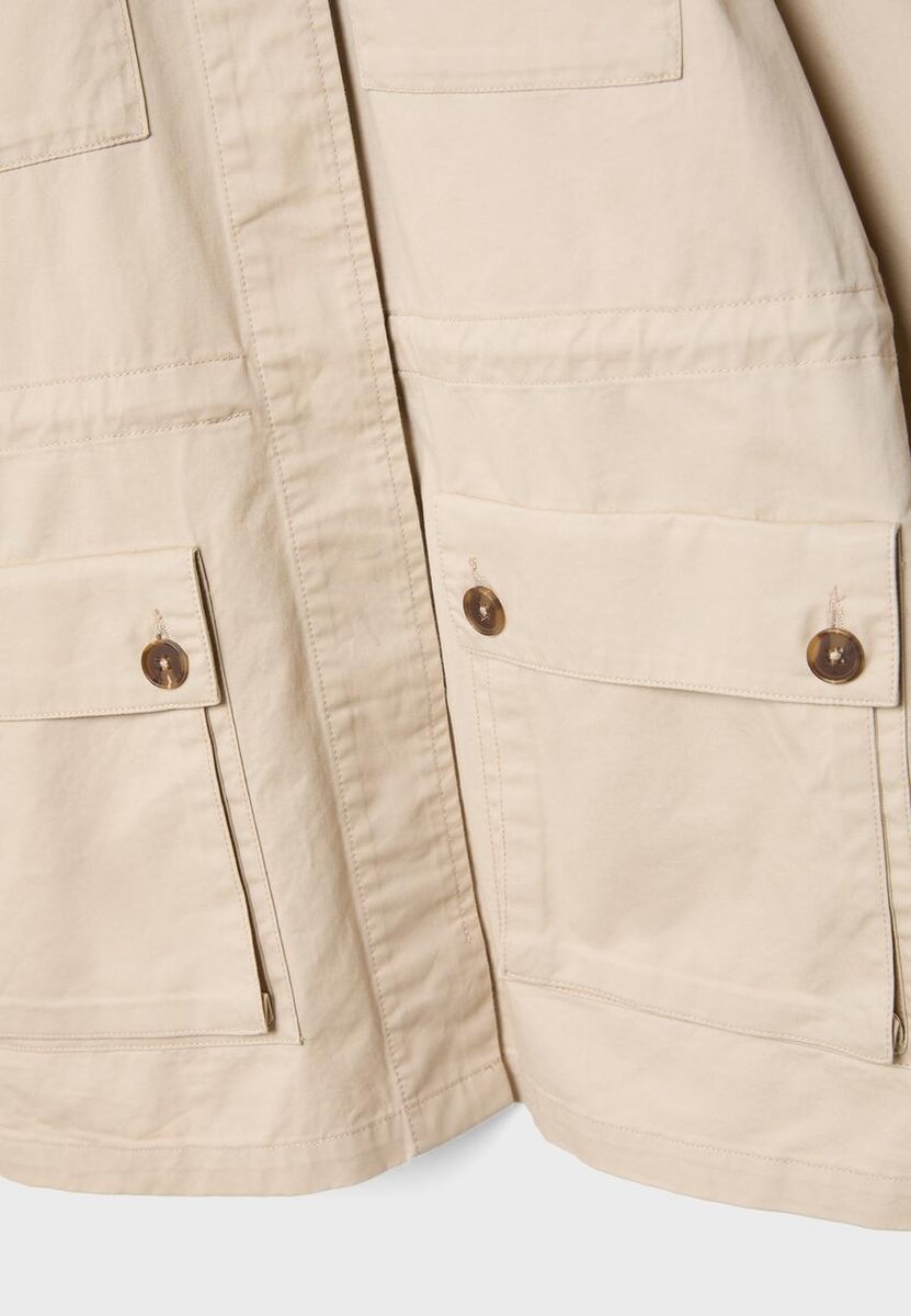 Parka in cotone dalla vestibilità regolare con collo a revers e maniche lunghe con polsini e bottoni. Tasche applicate sul davanti con patta e bottoni. Cintura in vita regolabile con cordino e fermacordini interni. Chiusura frontale con zip nascosta da una patta con bottoni a pressione. Disponibile in diversi colori.