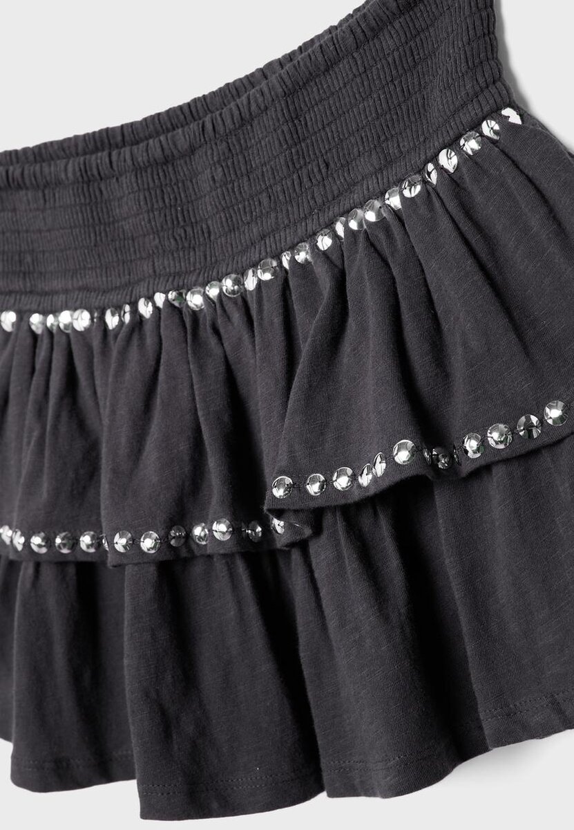 Minigonna con volant e borchie