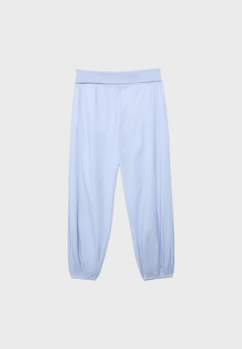 Pantaloni con vita risvoltata. Dotati di polsini elasticizzati. Disponibili in diversi colori.