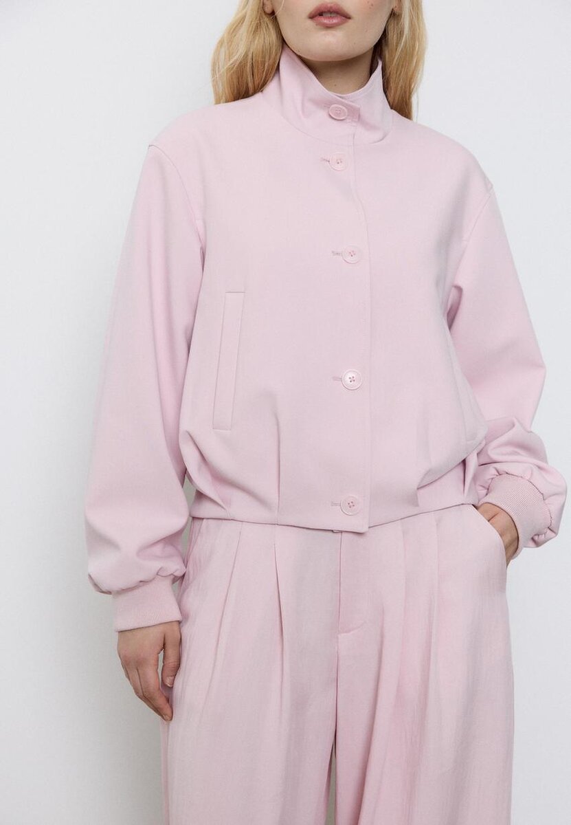 Giacca a collo alto con maniche a sbuffo da Stradivarius a soli 59,9 $ Disponibile per un periodo limitato. Null per donna Sempre di tendenza, entra e scopri subito!