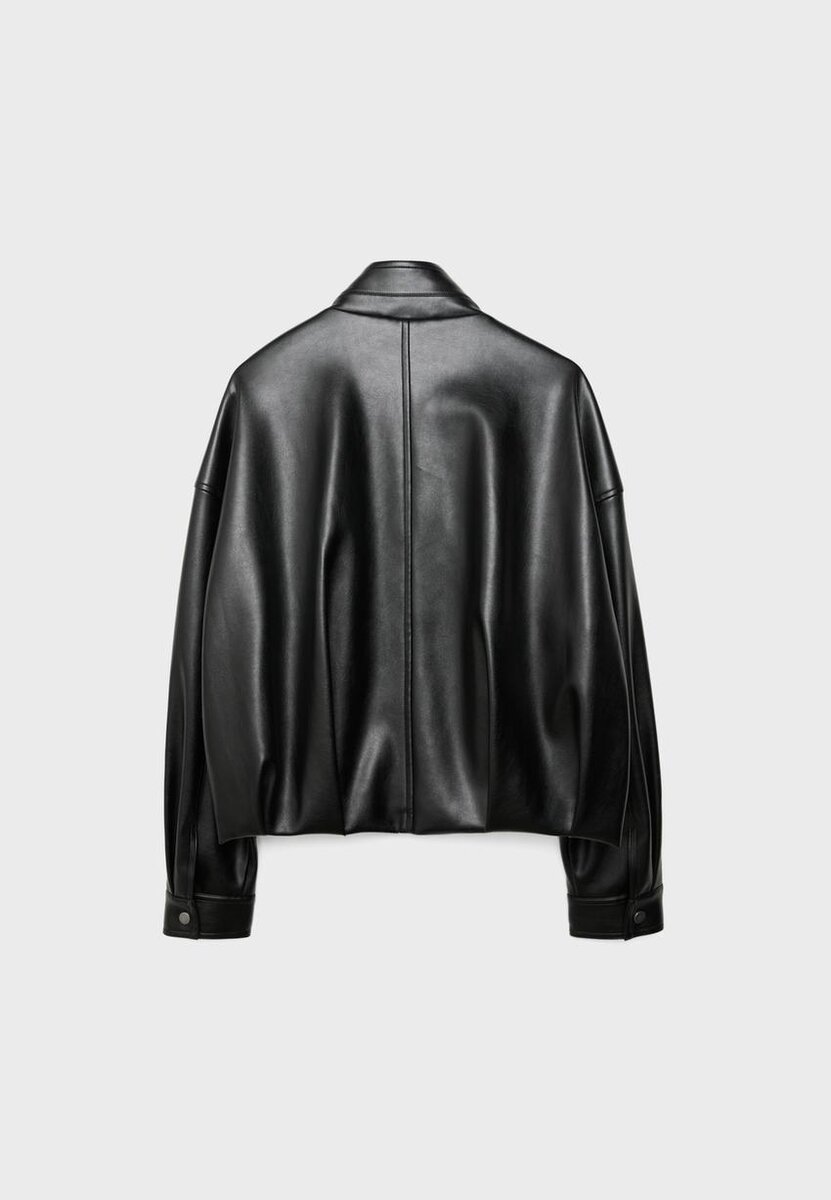Giacca a palloncino realizzata in tessuto effetto pelle con collo alto. Maniche lunghe e orlo a palloncino. Tasche a filetto sul davanti. Chiusura frontale con zip. Dotata di cintura abbinata.