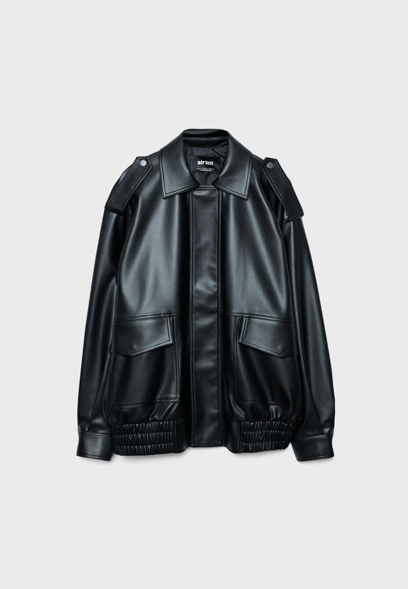 Giacca da motociclista oversize effetto pelle da Stradivarius a soli 69,9 $ disponibile per un periodo limitato. Mocacos Nuevo per donna sempre di tendenza, entra e scopri subito!