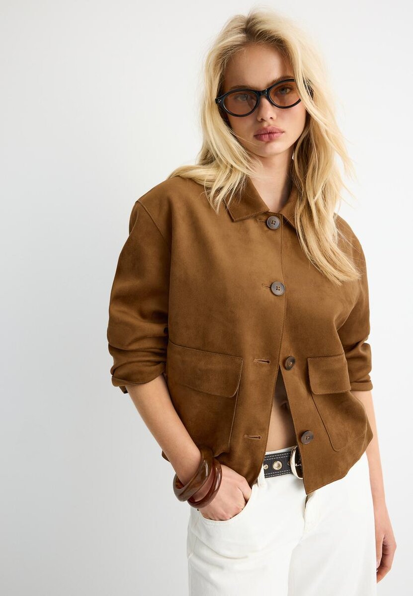 Giacca in finta pelle scamosciata con tasche