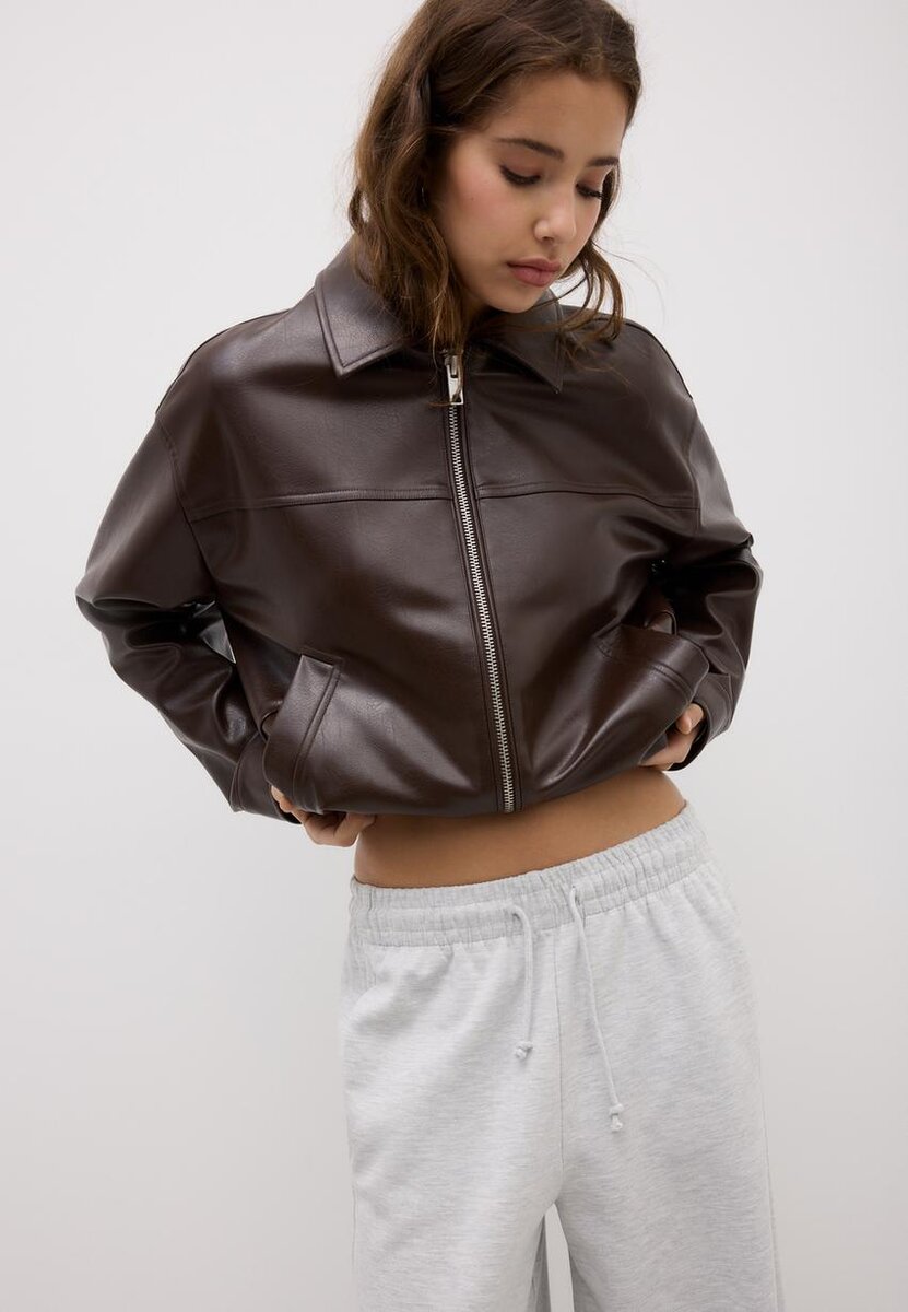 Giacca oversize effetto pelle da Stradivarius a soli 59,9 $ disponibile per un periodo limitato. L’effetto pelle da donna è sempre di tendenza, entra e scoprila subito!