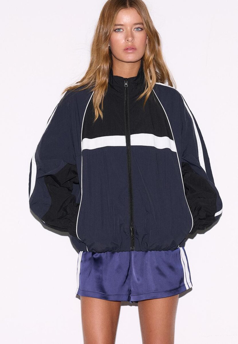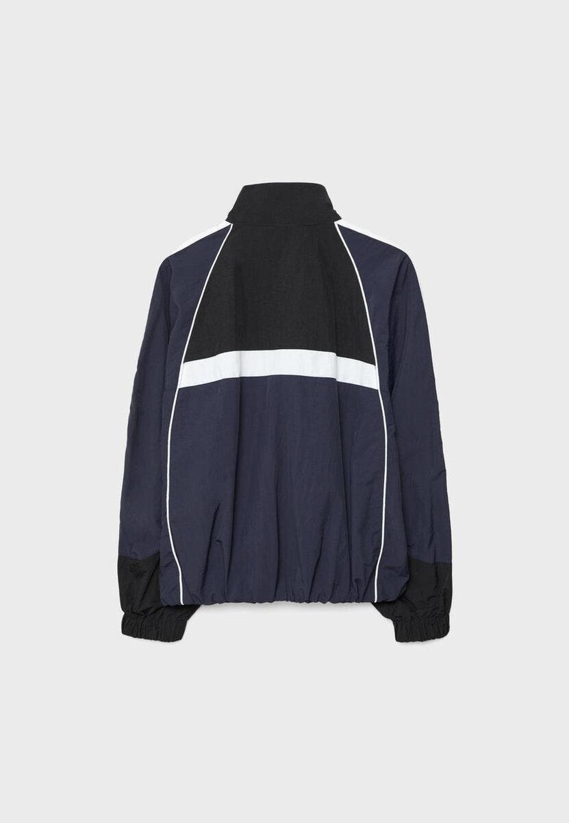 Giacca con collo alto e maniche lunghe con polsini elasticizzati. Dotata di chiusura frontale con zip e orlo elasticizzato.