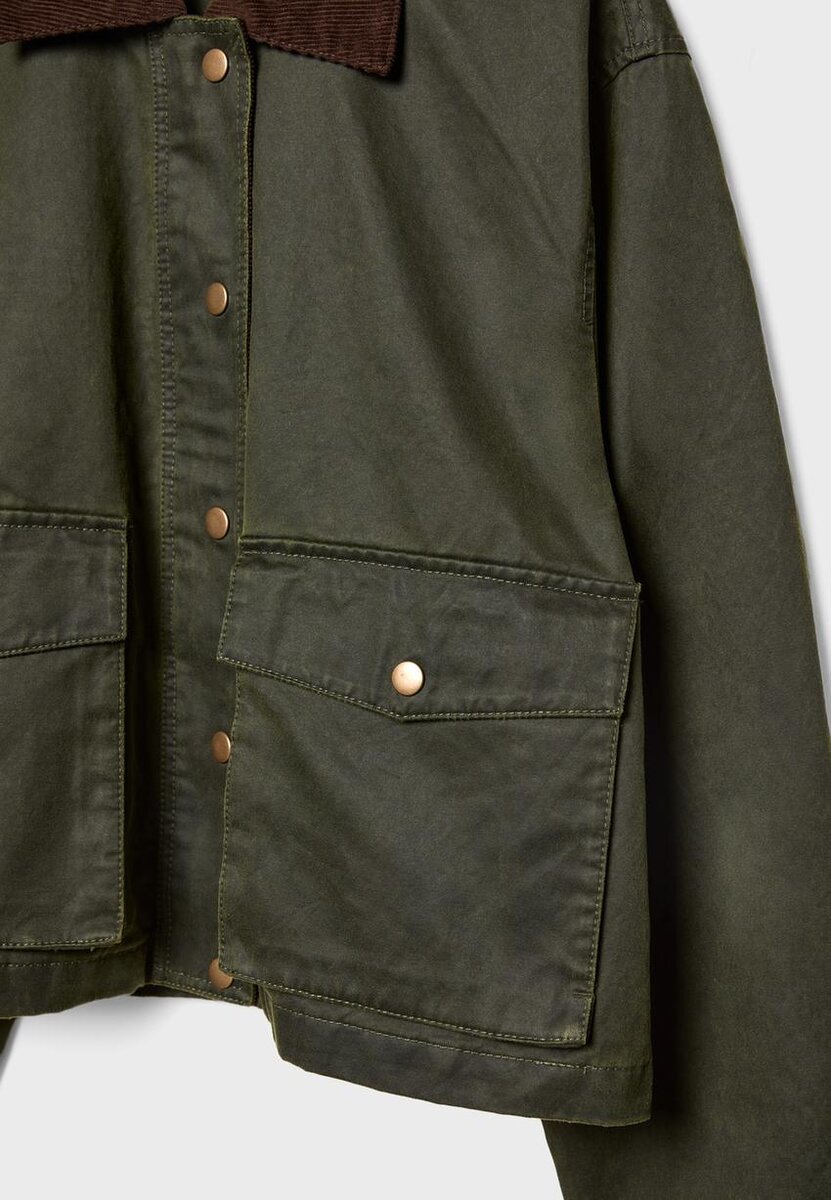 Il parka corto cerato di Stradivarius è il capo perfetto per chi cerca un cappotto leggero con un tocco urbano e contemporaneo. Il design combina materiali diversi, aggiungendo texture e dinamismo al capo, mentre la finitura cerata conferisce un look sofisticato e moderno. Grazie al suo taglio leggermente sartoriale, questa giacca offre una silhouette slanciata senza rinunciare al comfort.