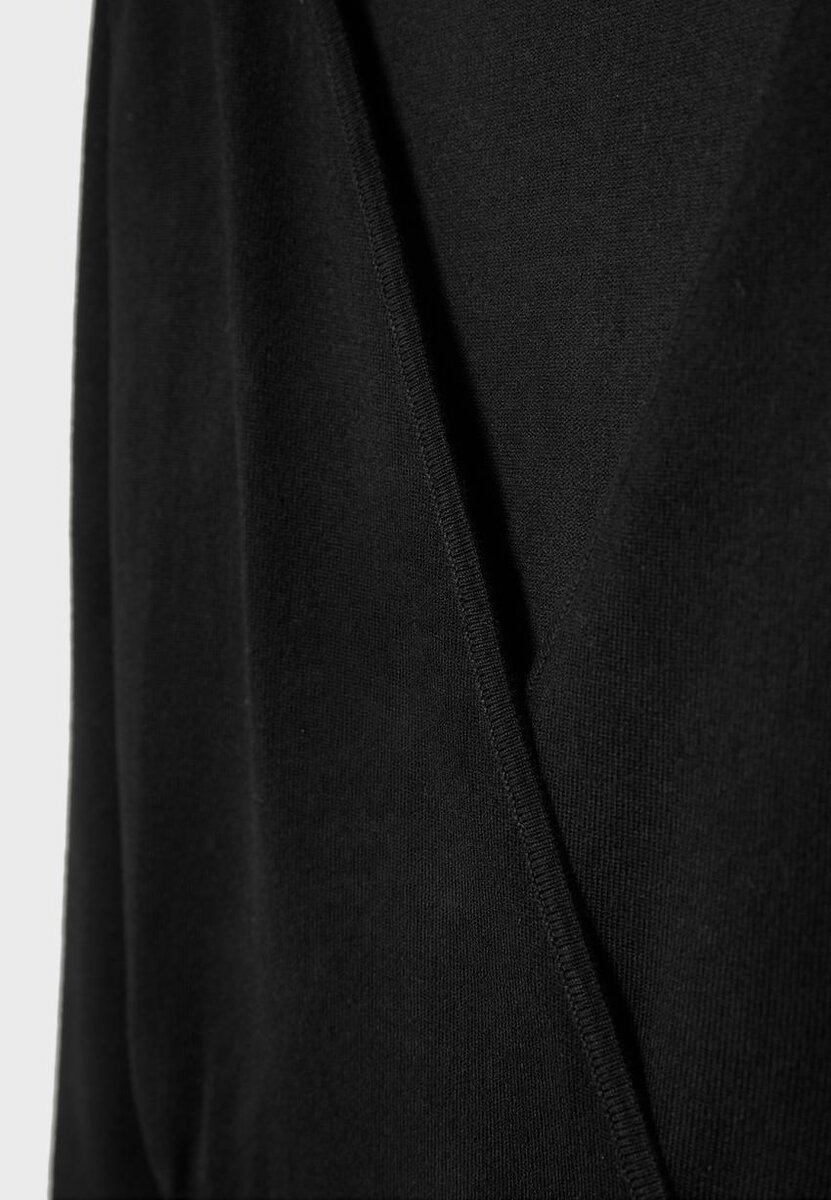 Cardigan avvolgente con scollo a V e maniche lunghe, chiusura con laccio dello stesso tessuto. Disponibile in una vasta gamma di colori.