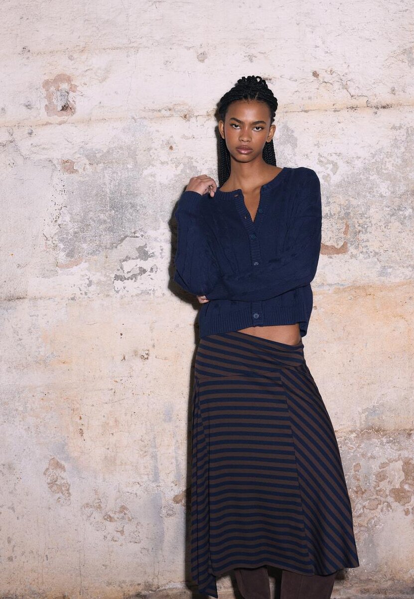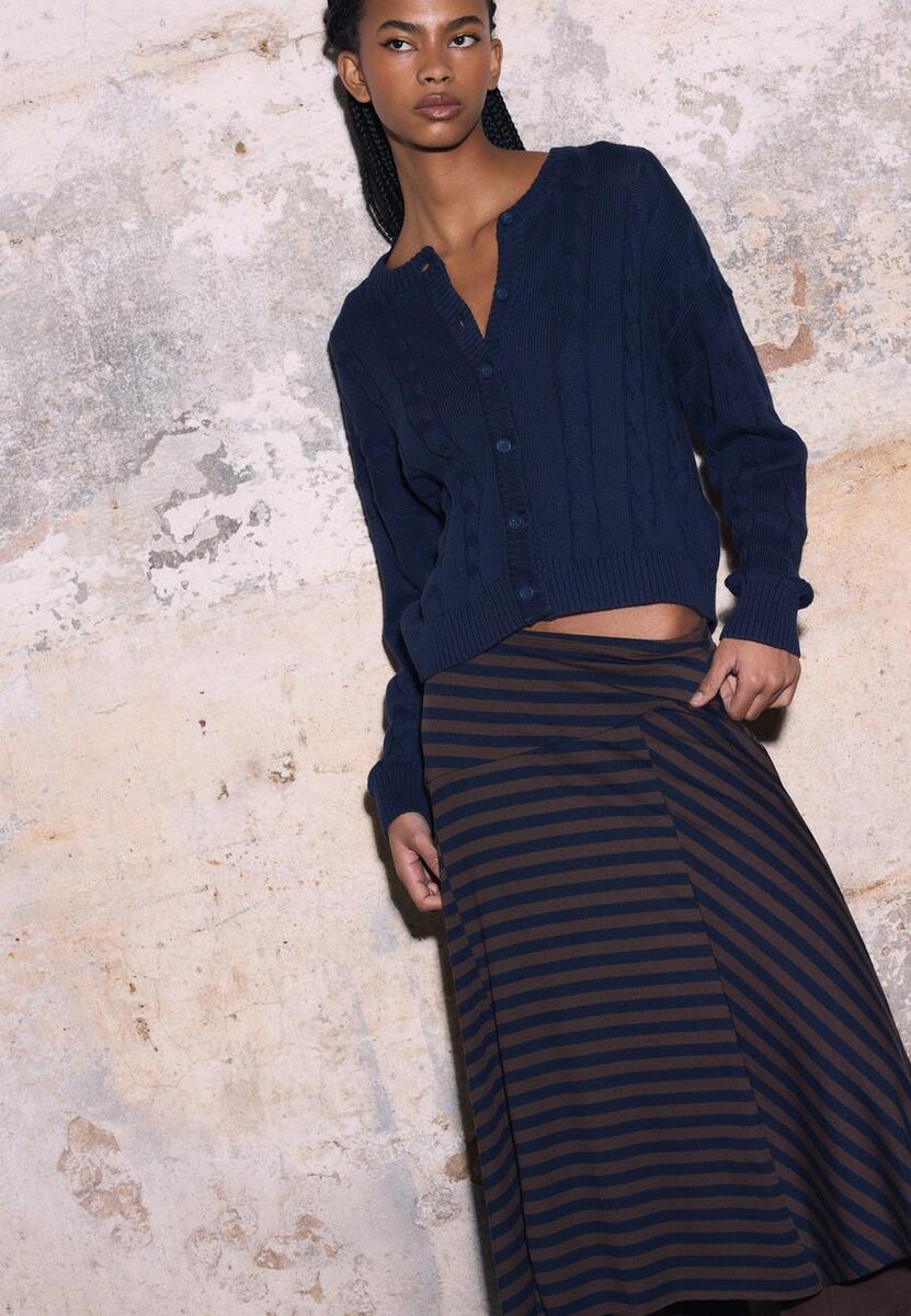 Cardigan con lavorazione a trecce e chiusura con bottoni