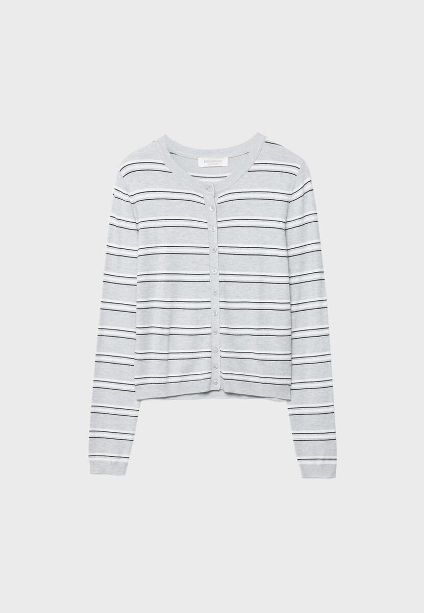 Cardigan in maglia a vestibilità regolare con collo rotondo. Maniche lunghe. Bordi a costine su collo e polsini. Chiusura frontale con bottoni. Disponibile in diversi colori.