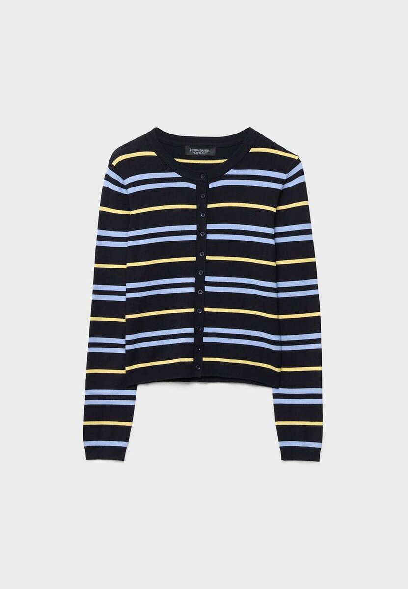 Cardigan in maglia a vestibilità regolare con collo rotondo. Maniche lunghe. Bordi a costine su collo e polsini. Chiusura frontale con bottoni. Disponibile in diversi colori.