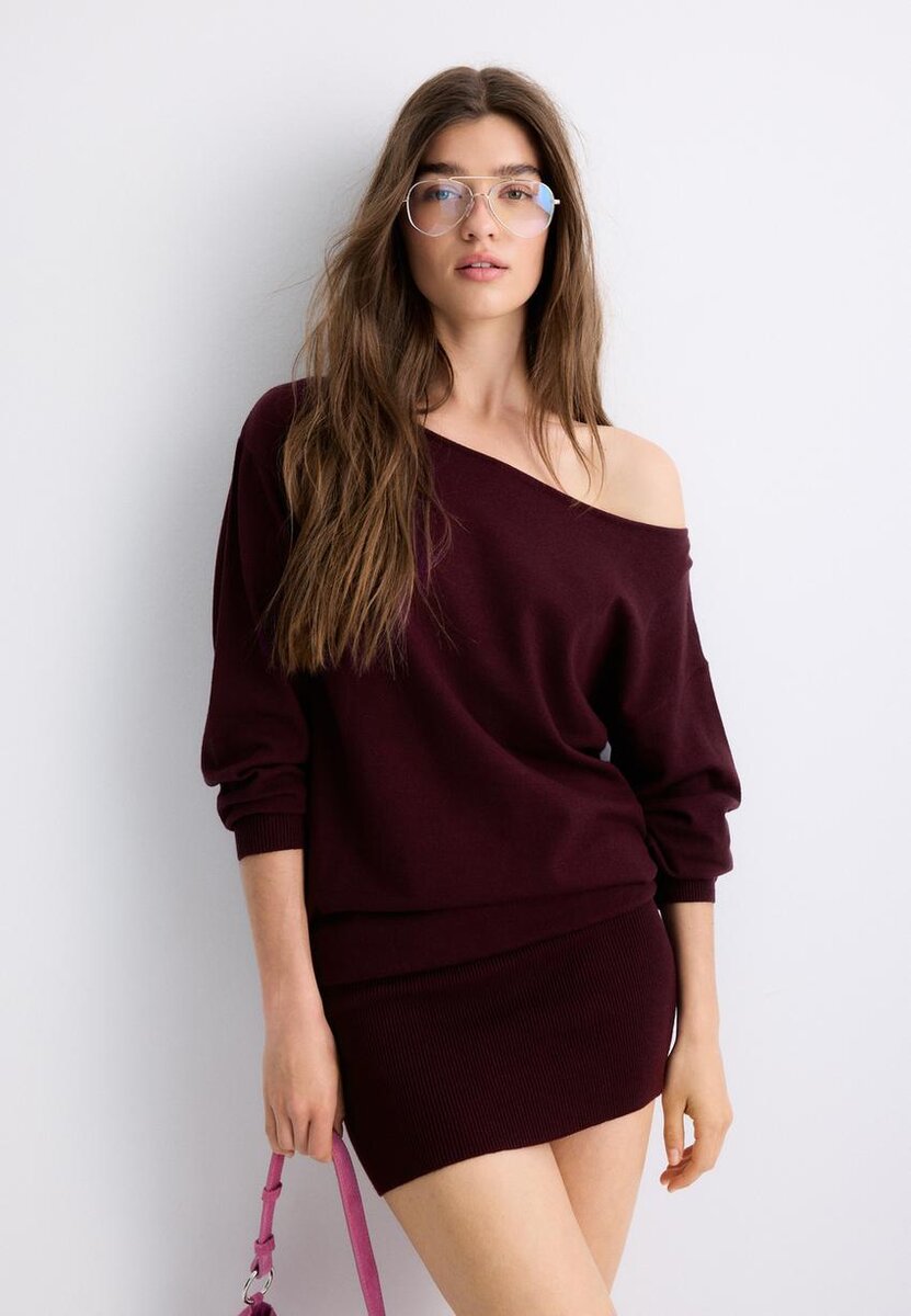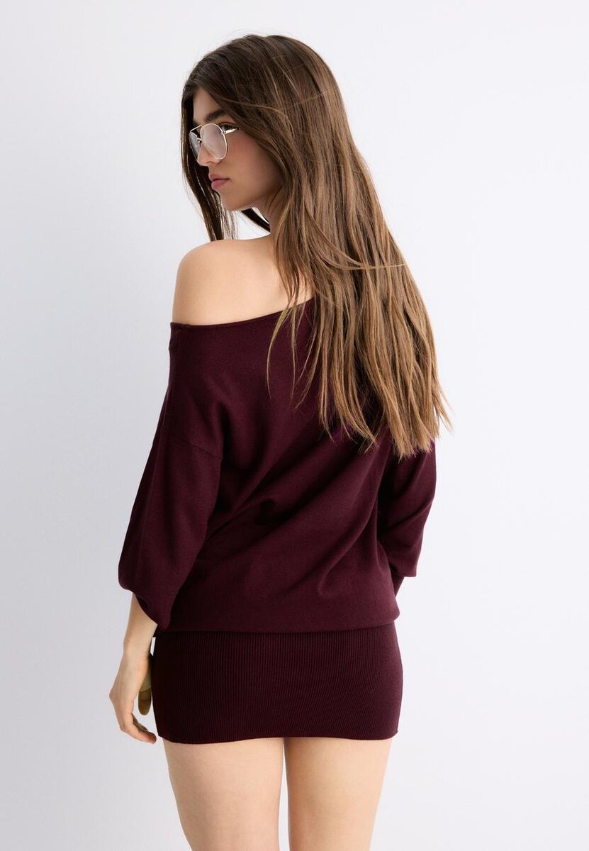 Abito corto in maglia con scollo a barchetta da Stradivarius a soli 35,9 $ disponibile per un periodo limitato. Stradimarket per donna sempre di tendenza, entra e scopri subito!