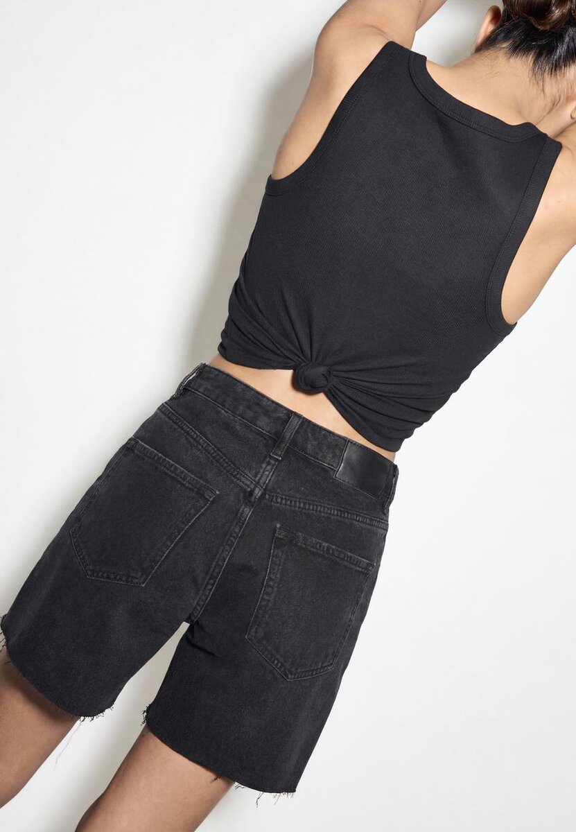 D93 Pantaloncini Bermuda in denim a vita alta da Stradivarius a soli 39,9 $ disponibili per un periodo limitato. Null per donna sempre di tendenza, entra e scopri subito!