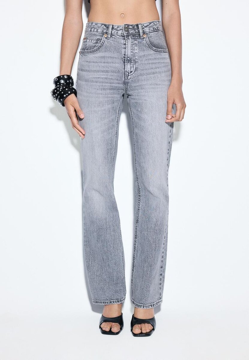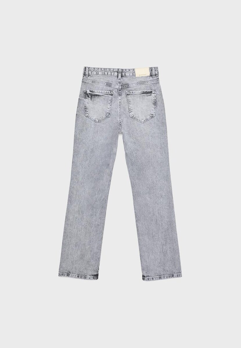 Jeans a gamba dritta a vita media con design a cinque tasche. Chiusura con cerniera e bottone in metallo. Disponibili in vari colori.