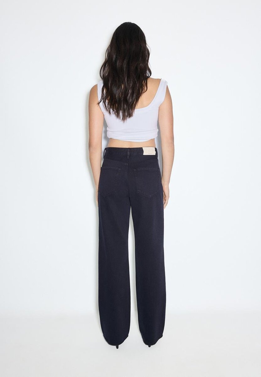 Jeans a vita alta, gamba Wide Leg con design a cinque tasche. Chiusura con zip e bottone metallico in alto.Rise: Alta, all’ombelico