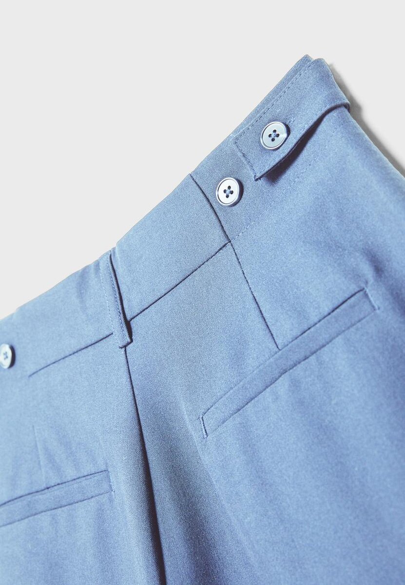 Pantaloni dalla vestibilità ampia a vita media con vita regolabile con bottoni. Dotati di tasche anteriori e finte tasche posteriori a filetto. Pinces sul davanti. Chiusura con zip frontale, bottone interno e gancio in metallo. Disponibili in diversi colori.