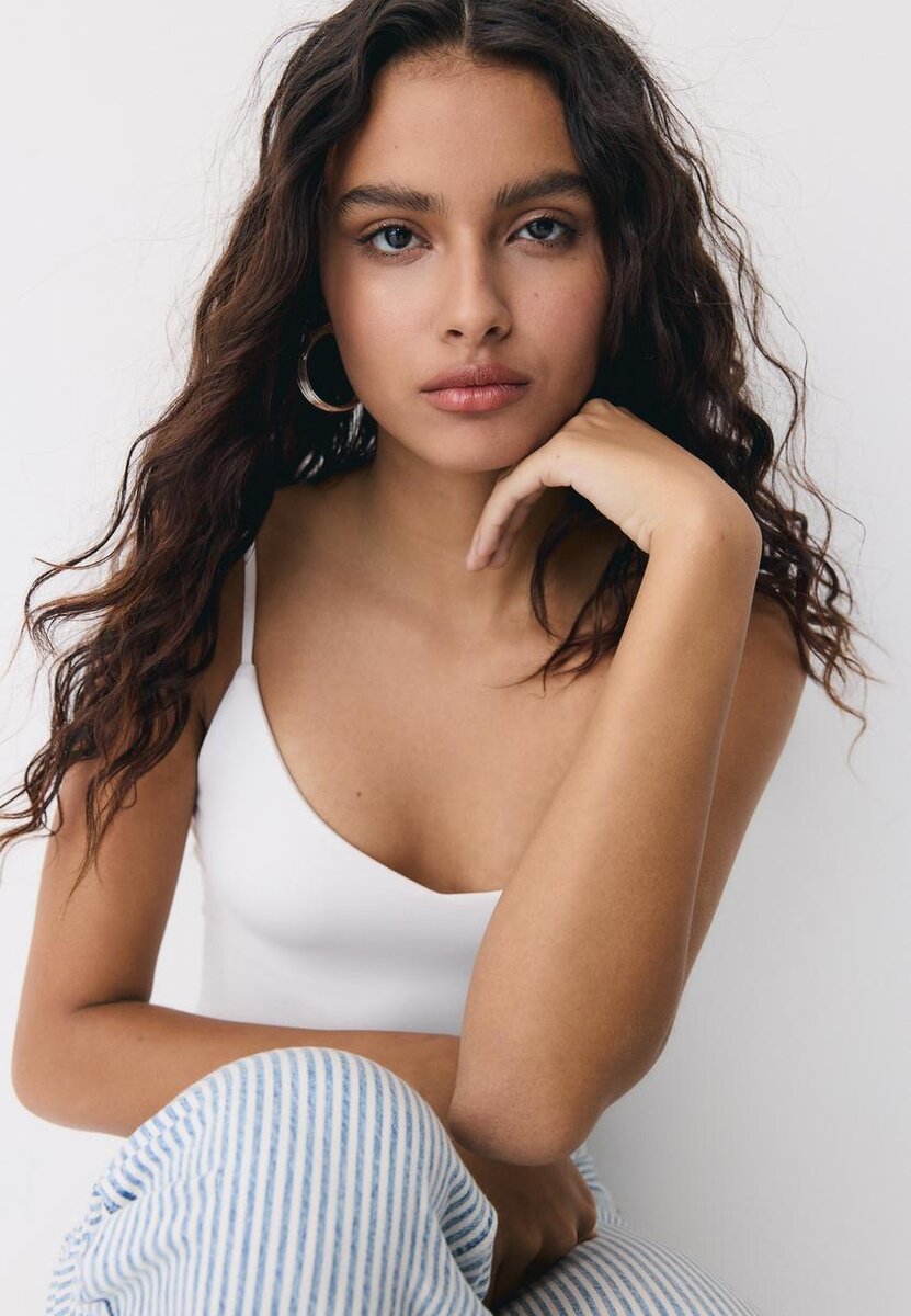 Body aderente con scollo a V e spalline sottili. Chiusura con bottoni a pressione sul fondo.