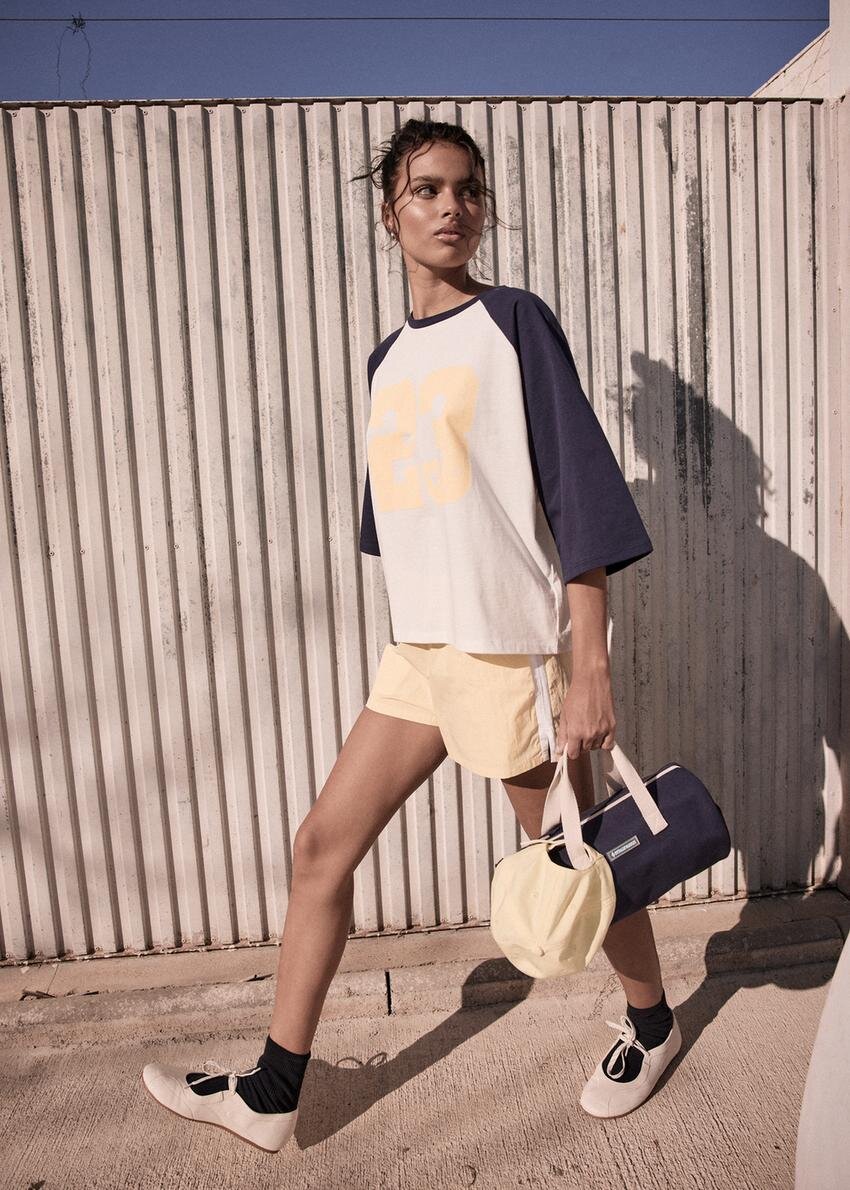 T-shirt dalla vestibilità regolare in 100% cotone. Girocollo. Maniche raglan fino al gomito. Dettaglio stampa frontale.