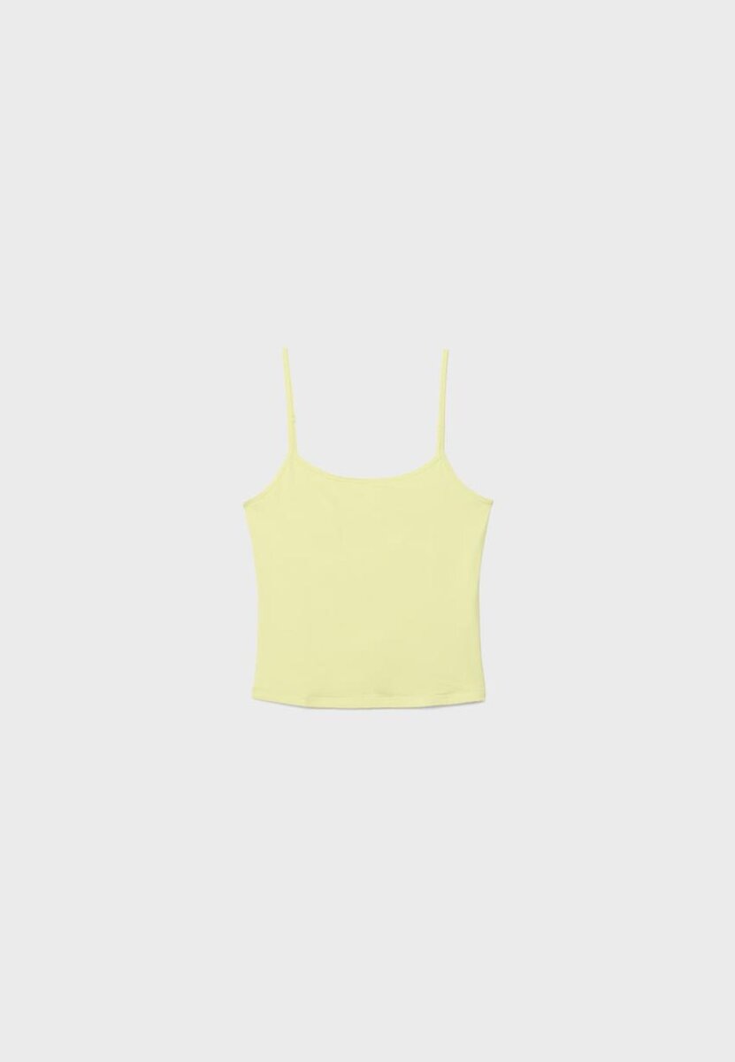 Top aderente con scollo rotondo e spalline sottili regolabili. Disponibile in diversi colori.