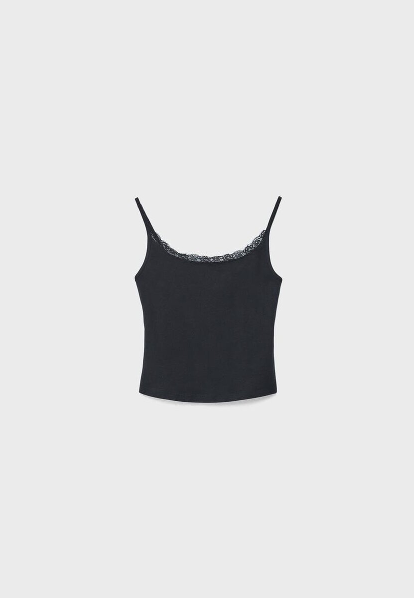 Top con spalline e bordi in pizzo da Stradivarius a soli 17,9 $ disponibile per un periodo limitato. Mocacos Nuevo da donna sempre di tendenza, entra e scopri subito!
