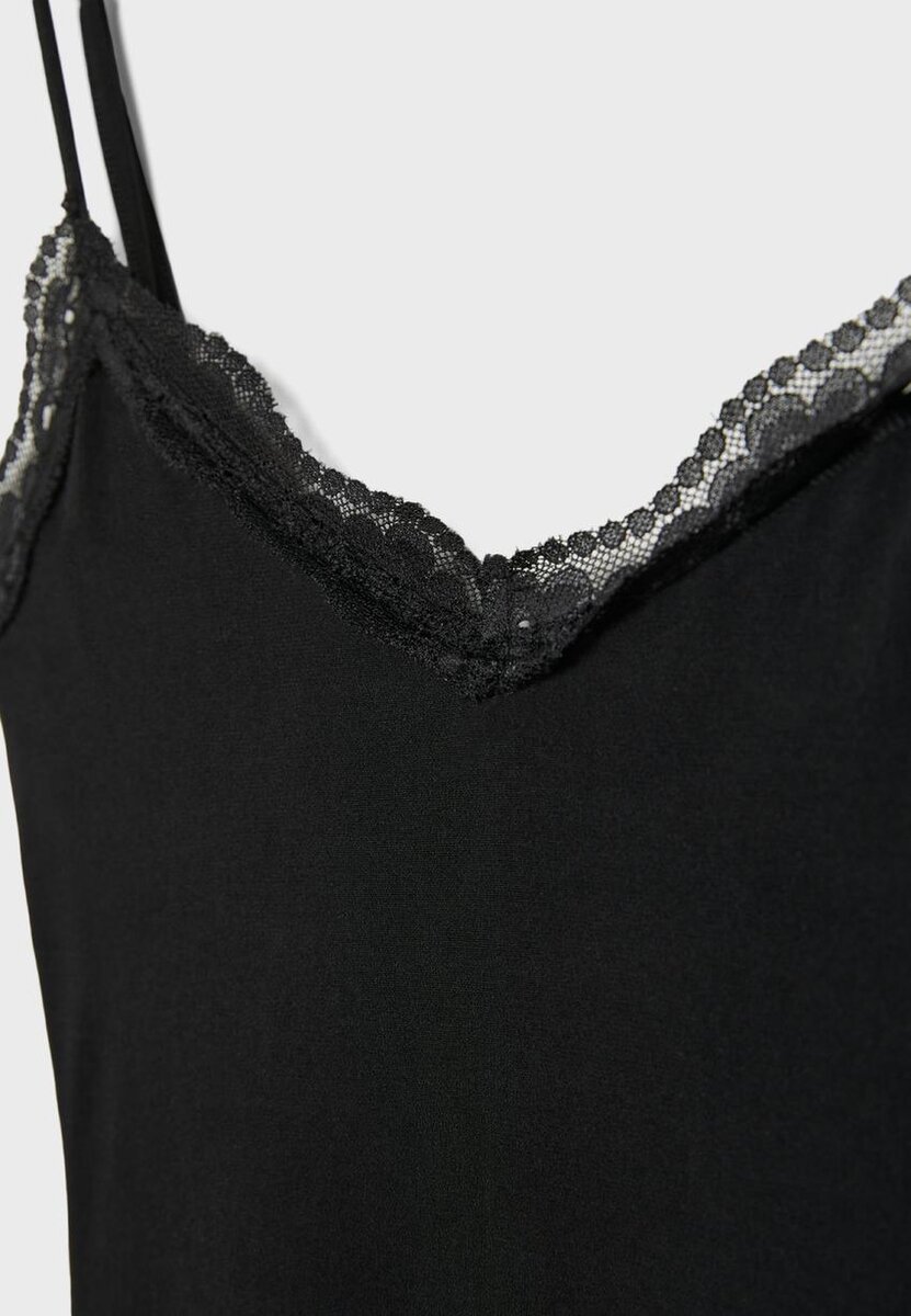 Vestito lungo in maglia con scollo a V e spalline. Caratterizzato da un dettaglio in pizzo sulla scollatura.