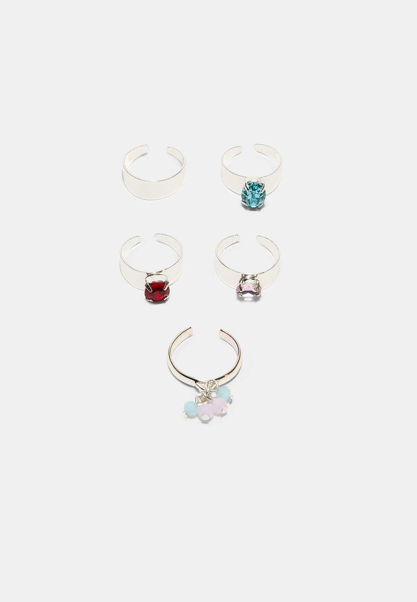 Set di 5 anelli regolabili per le dita dei piedi con dettagli in vetro e perline. Realizzati con il 10% di vetro.