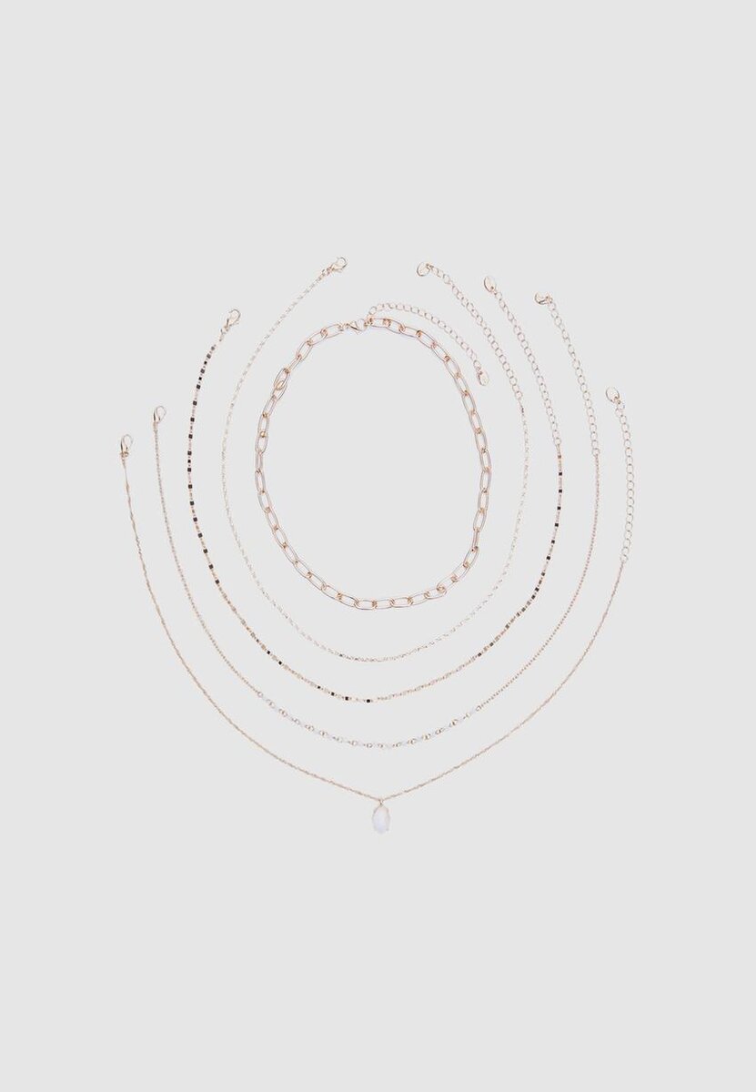 Set di 5 collane con ciondoli in pietra rosa da Stradivarius a soli 14,9 $ Disponibile per un periodo limitato. Null per donna Sempre di tendenza, entra e scopri subito!