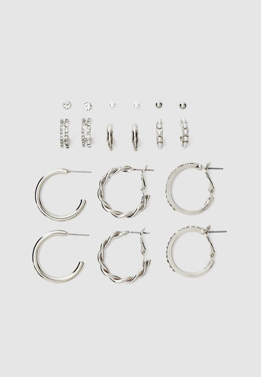 Set di 9 orecchini a cerchio con strass e perline in Stradivarius a soli 14,9 $ Disponibile per un periodo limitato. Null per donna Sempre di tendenza, entra e scopri subito!