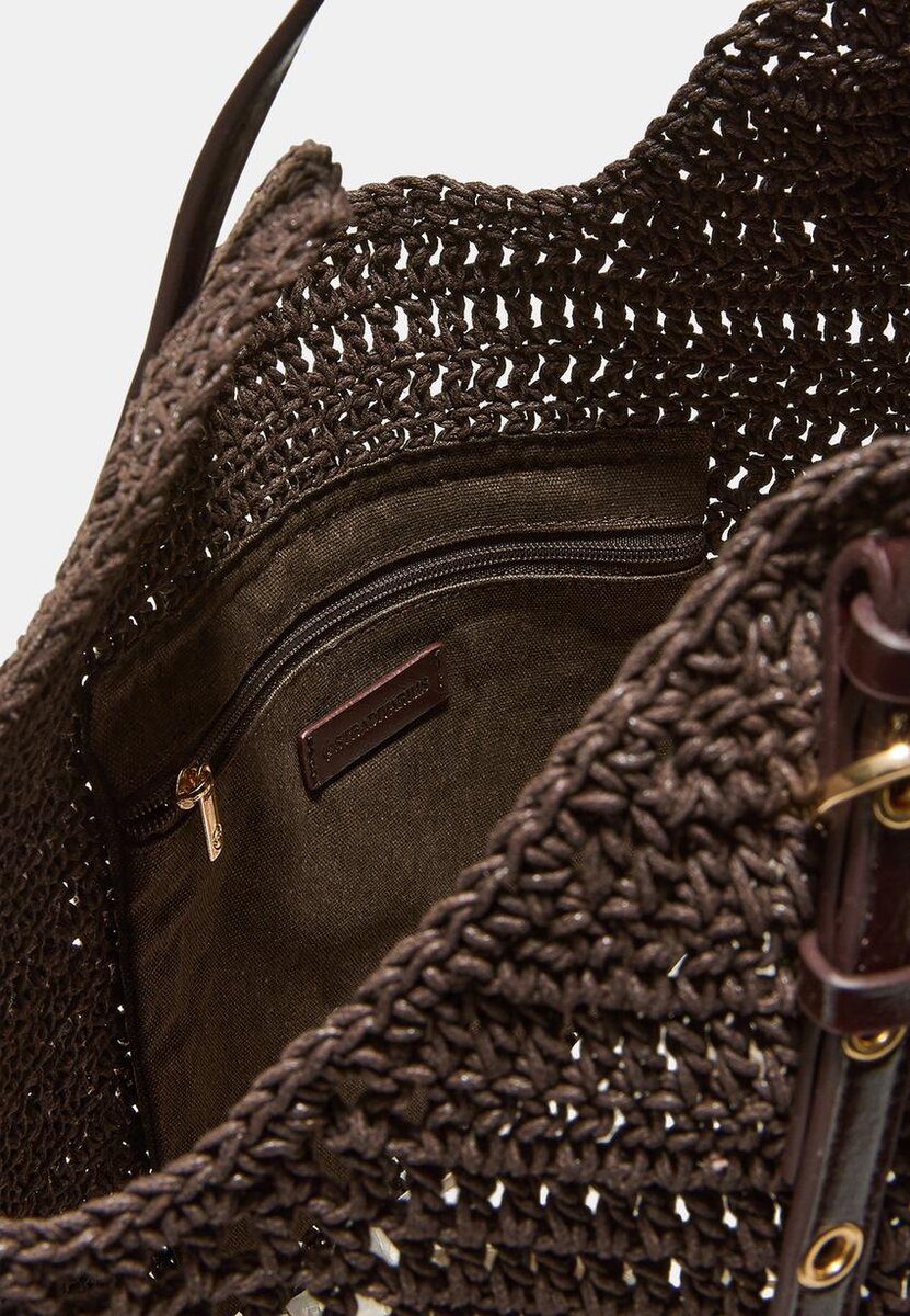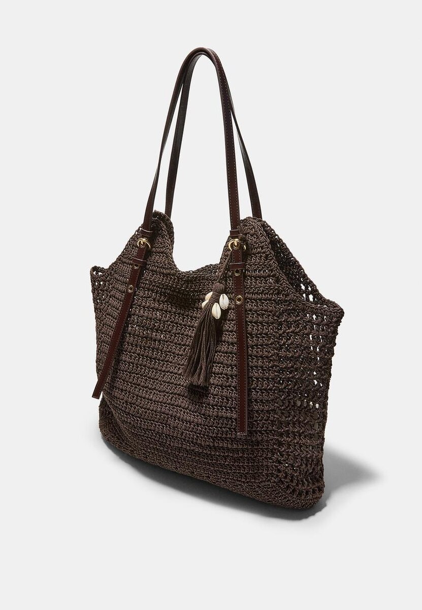 Borsa shopper all’uncinetto con nappina. Tracolla. Fodera in cotone. Disponibile in diversi colori.