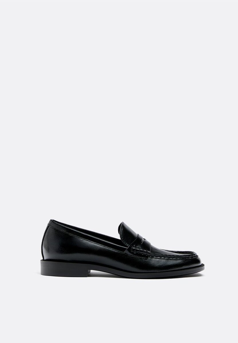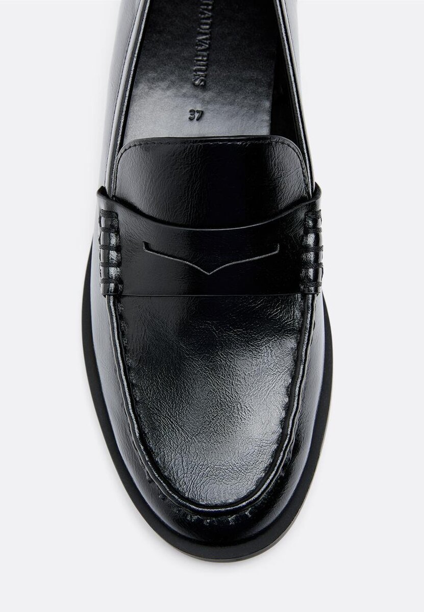 Mocassini da donna effetto pelle neri con suola sottile. Caratterizzati da un dettaglio a maschera sul davanti e da una rifinitura sulla suola. Disponibili in nero. Altezza della suola: 2 cm.