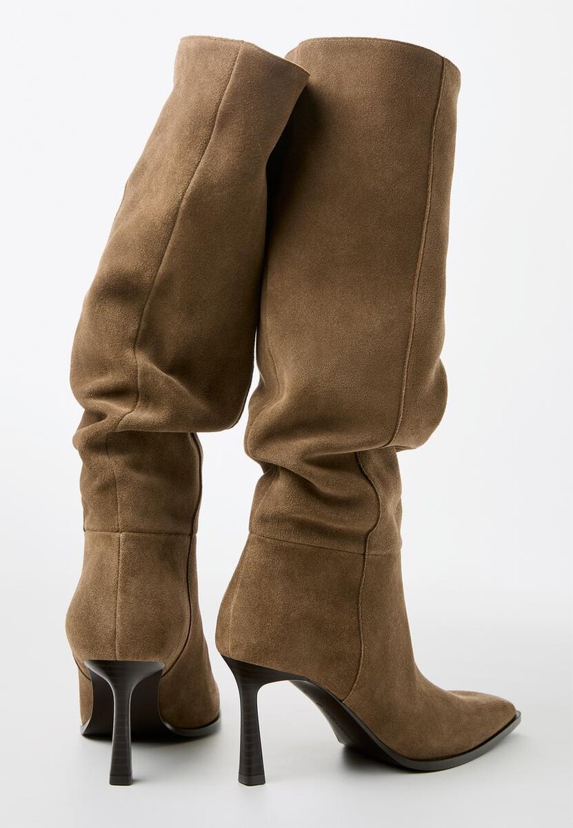 Stivali alti in pelle Slouchy con tacco a spillo morbido da Stradivarius a soli 149 $ disponibili per un periodo limitato. Null per donna sempre di tendenza, entra e scopri subito!